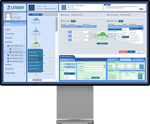 수 많은 설계표준 및 국제규격을 데이터화하여 프로젝트 사양서와 비교/분석이 가능하여 엔지니어링에서 발생하는 정보누락 및 설계오류로 인한 실패비용을 줄일 수 있으며, 엔지니어링 기업 특화형 LSSR Module-2를 사용하여 인공지능을 적용한 업무의 자동화 및 업무프로세스의 모니터링이 가능합니다. 특히, 엔지니어링에 필요한 소요기간을 1/10 이하로 줄일 수 있으므로, 기업의 경쟁력 및 수익률을 극대화시킬 수 있습니다.